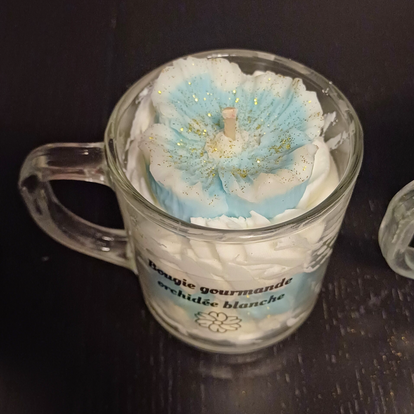 Bougie gourmande Orchidee blanche. La senteur de cette bougie chantilly sera agréable dans votre pièce.